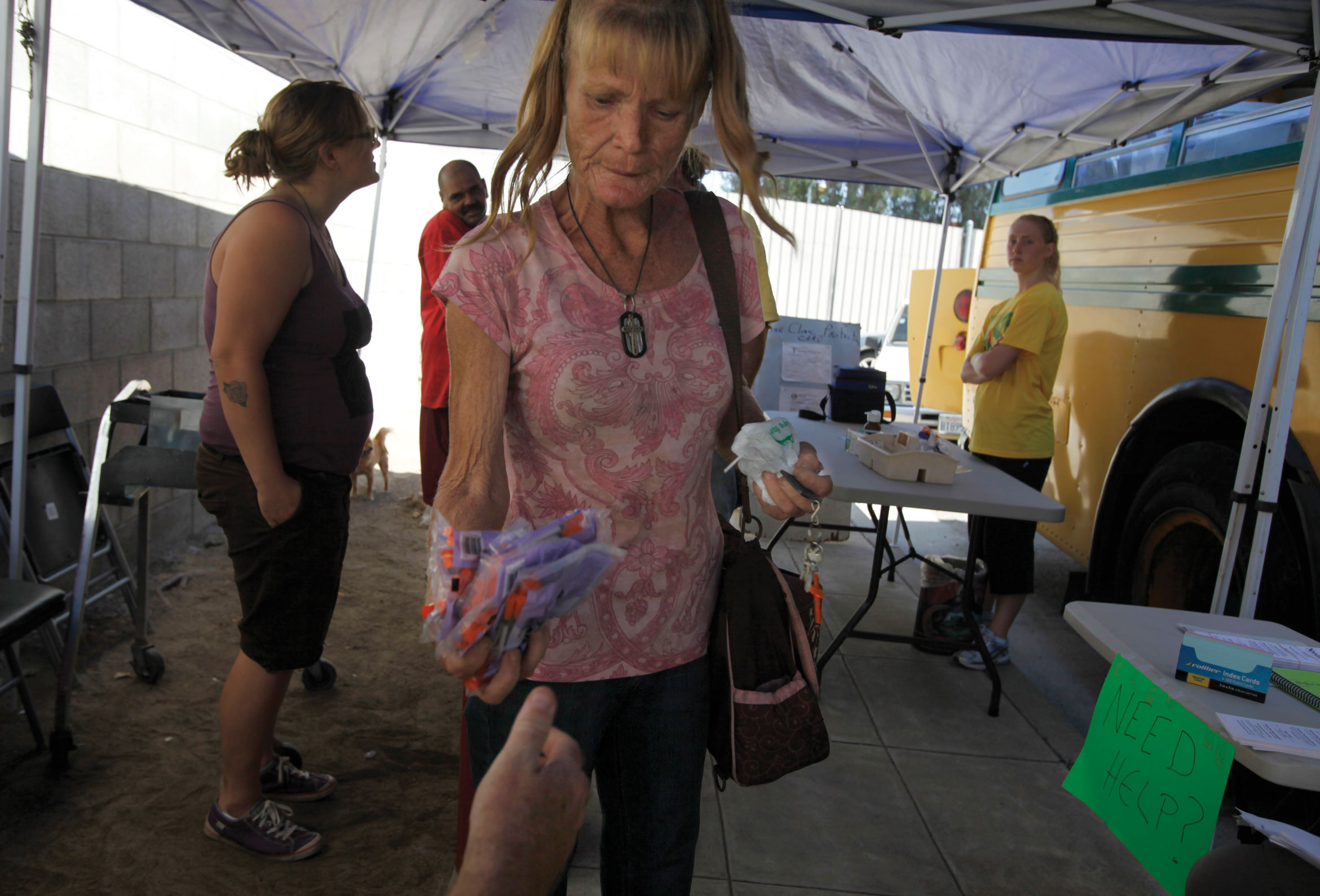 Needle exchanges coupled with drug-treatment referral programs have been championed by the ABA to help mitigate the danger of disease transmission since 1997. Photo by Michael Robinson Chavez/Los Angeles Times via Getty Images.